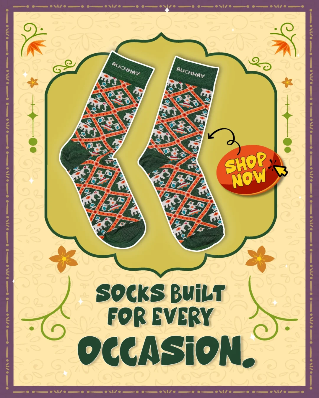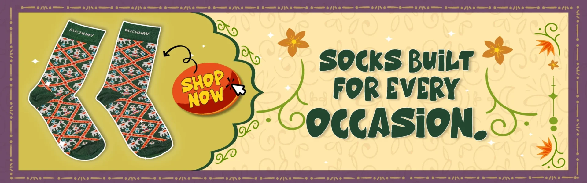 With a deep love for Indian culture and celebration, Auchhav offers more than just socks. We deliver stories, vibrant colors, and timeless traditions woven into every pair. Inspired by the splendor of Indian festivals and the sweetness of heritage, our designs bring the essence of royalty straight to your feet.
